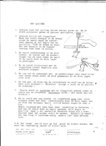 Toen we de bovenkant klaar hadden werd ons geleerd hoe we de top, tussenlaag en de onderkant moesten samen voegen en doorquilten. Ook de instructie van de door-quiltles zat nog in mijn map.