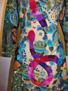 Welk werk zou ik dan insturen? Mijn nieuwste 2 mantels waren op dat moment in Canada in de World of Threads tentoonstelling en die wilde ik ook graag na teugkomst in mijn komende tentoonstellingen in Europa laten zien. Ook andere mantels waren al “geboekt” voor tentoonstellingen.