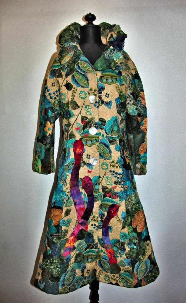 Welk werk zou ik dan insturen? Mijn nieuwste 2 mantels waren op dat moment in Canada in de World of Threads tentoonstelling en die wilde ik ook graag na teugkomst in mijn komende tentoonstellingen in Europa laten zien. Ook andere mantels waren al “geboekt” voor tentoonstellingen.