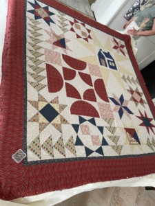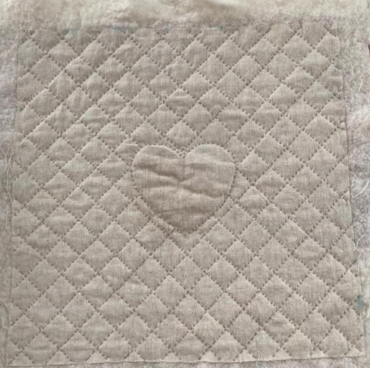Kijk hoe mooi de achterkant van het quiltblokkenboek is geworden…ik geloof gewoon niet dat de quilster met de foto met het hartje nauwelijks heeft doorgequilt…zo’n mooie regelmatige steek al…