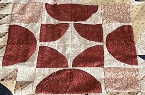 Veel quiltsters vinden ronde vormen niet voor beginners, elke keer zie ik het weer staan op het internet… ik denk dat het prima kan…als je maar goed uitlegt hoe, hoe te spelden… spelden dat is eigenlijk het belangrijkste…en dan vanuit het midden naar rechts en vanuit het midden naar links…prachtige ronde vormen krijg je dan…