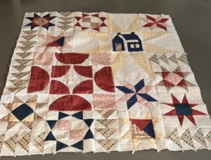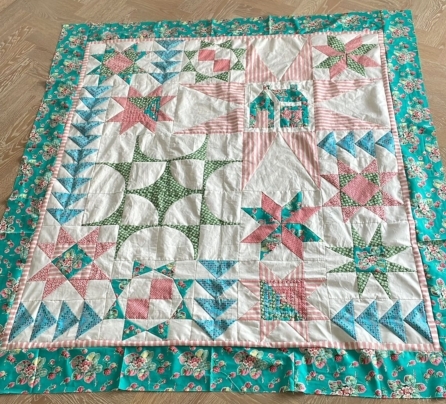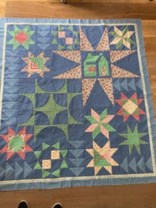 Er zitten nog vele gaten in de quilt… er missen nog ronde vormen, sterren en een huis…