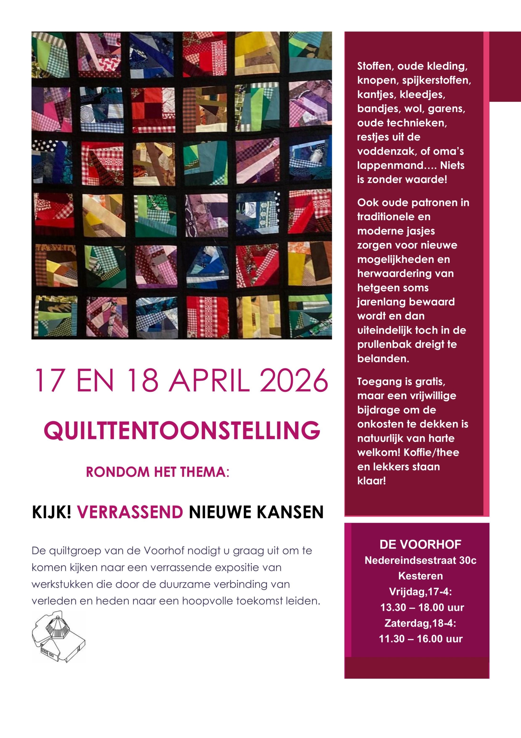 Kesteren – Kerkelijk centrum De Voorhof; Quilttentoonstelling rondom het thema: Kijk! Verrassend nieuwe kansen