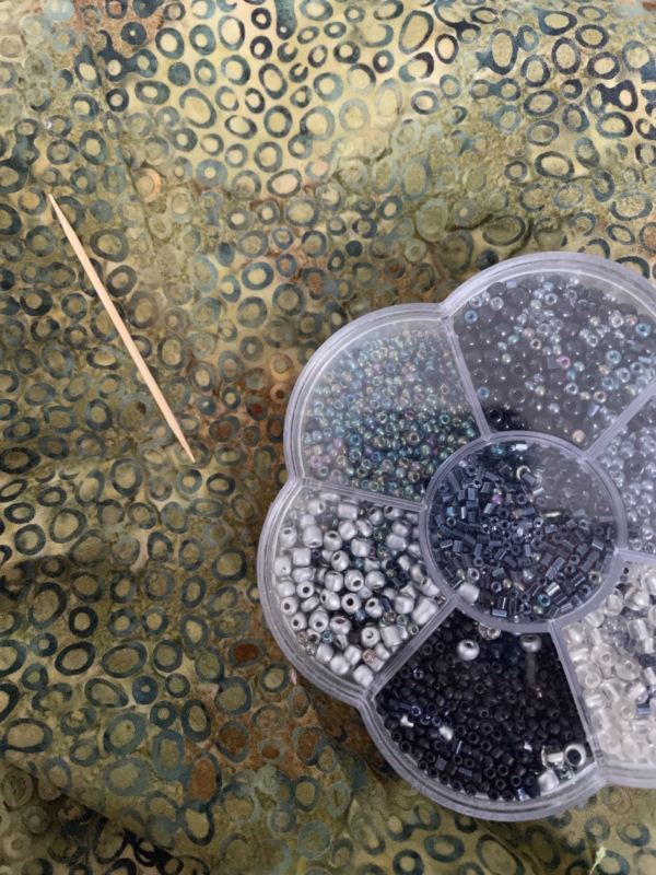 Nee…ik maak hem gewoon…prikkertje, kraaltje en stukje stof…tadaa…