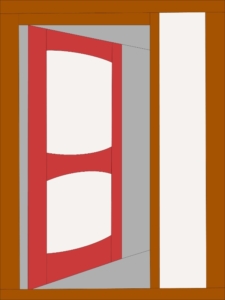 Ook de deur beter uit laten komen en niet teveel muur erom heen gaan maken. Niet teveel tierlantijnen, want een moderne quilt is voor mij strak van vorm met veel negatieve ruimte die ik met quiltwerk kan invullen.