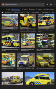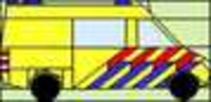 Met het verder tekenen van andere voertuigen merkte ik dat grote auto’s in de ring kleiner werden en kleinere auto’s juist groter. Ook zag ik in Steenwijk een ambulance met veel minder strepen. Ik ging googlen en ontdekte dat er veel variaties zijn in ambulances. Kenmerkend zijn wel de rood/blauwe strepen. Positie van de strepen kan ook wisselen. Met deze informatie kon ik mijn ambulance bijwerken en beter uitvoerbaar maken. Ook besloot ik om de voertuigen uit de ring te halen. Het definitieve ontwerp van de ambulance was klaar.
