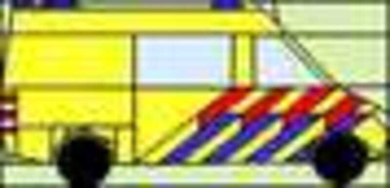 1. Ik printte de ambulance in spiegel uit. Om inkt te sparen kleurde ik het patroon handmatig in.