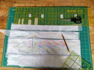 4. Nu kon ik dit onderdeel met de Foundation Paper Piecing methode (machinaal)aan elkaar naaien. Wel goed opletten dat de naden van de stroken op de juiste plek komen