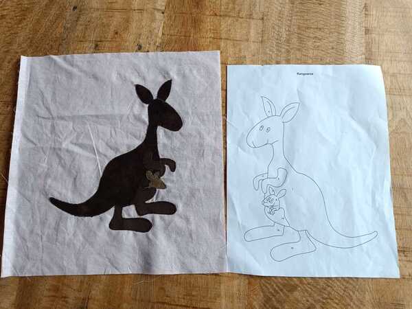 Ik printte de afbeeldingen in de juiste maat in spiegelafbeelding uit. Ik trok het over op Seam2seam papier. Ik knipte het grof uit. Plakte het op de achterkant van de stof en knipte het precies uit. Ik kon de diertjes met de verschillende onderdelen weer opbouwen en vastnaaien. Dit deed ik met de naaimachine. Kleine festonsteek. Ik ontdekte wel dat ik alcohol en/of de super universele naaimachinenaald moest gebruiken anders kwam er plaksel aan de naald en brak de draad.