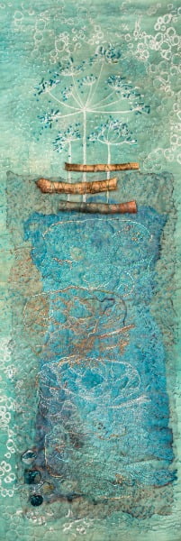 Hannie de Beer woont samen met haar man in Eindhoven. Het werk van Hannie bestaat uit veel handwerk gecombineerd met machinaal werk. Ze gebruikt daarbij verschillende materialen. Vooral het werken met eigen gemaakt papier en het maken van breakdown lappen is voor haar telkens een uitdaging. Daarmee geeft zij eigen invulling aan haar quilts.