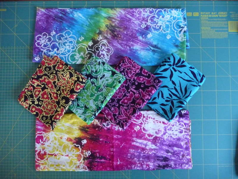 Ik kon moeilijk kiezen en zeker niet met een echtgenoot, dochter en schoonzoon die niets met stoffen hadden en zeker niet met quilten. Voelde ik de blikken in mijn rug en daardoor toch enigszins op gejaagd, heb ik snel een paar batiks uitgekozen.