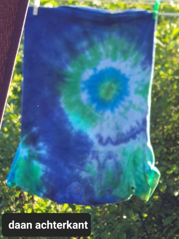 Acrylinkt is heel vloeibaar, als je het mengt met een bindmiddel ligt het meer op de stof. Zoals hier inkt vermengd met scheerschuim (kan ook met haargel). Dan kun je er goed mee stempelen of sjabloneren. Of met je vingers of kwast een bepaald stuk stof bestrijken met dit mengsel. Luchtig overbrengen.