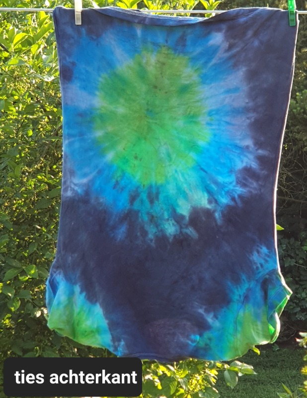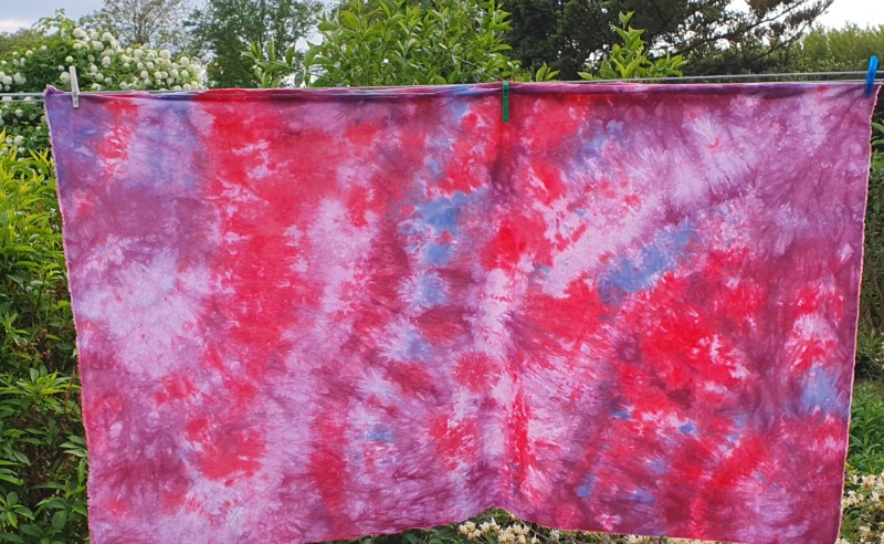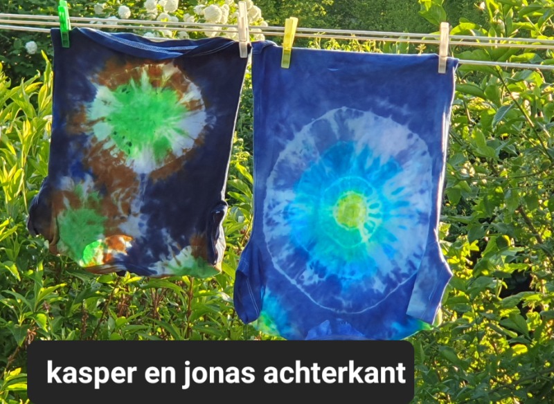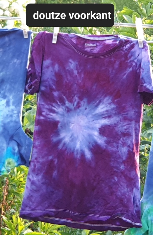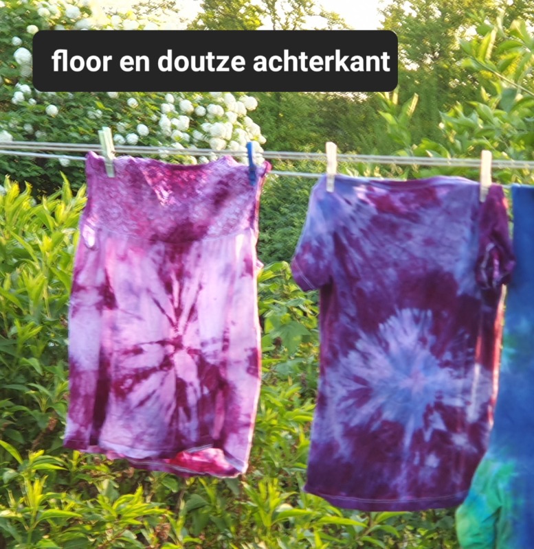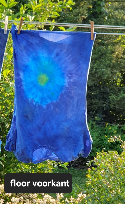 Maar op donkere stof kun je ook werken met discharge pasta. Een soort van bleekmiddel, maar dan een die niet in de stof vreet..