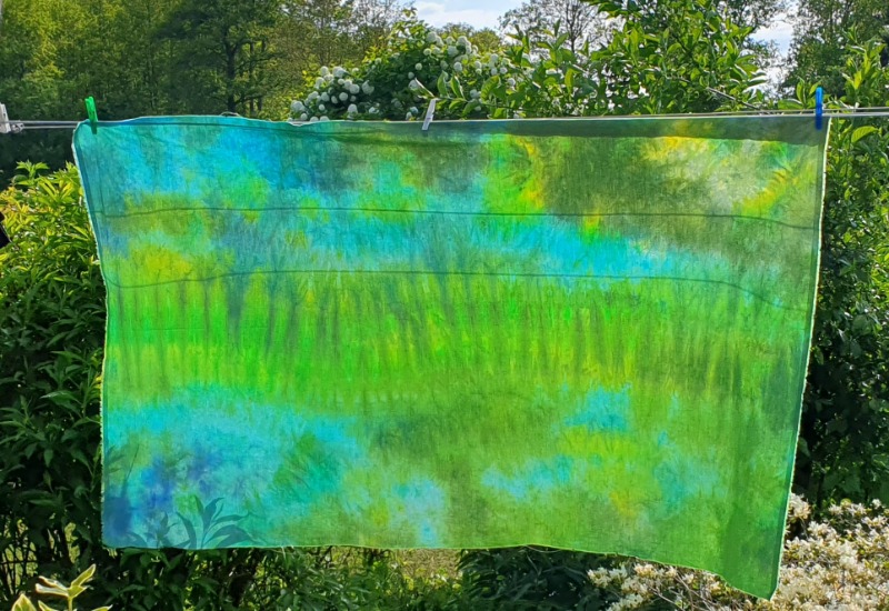 Na drogen het schuim wegvegen en het lapje strijken voor fixatie.