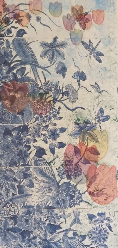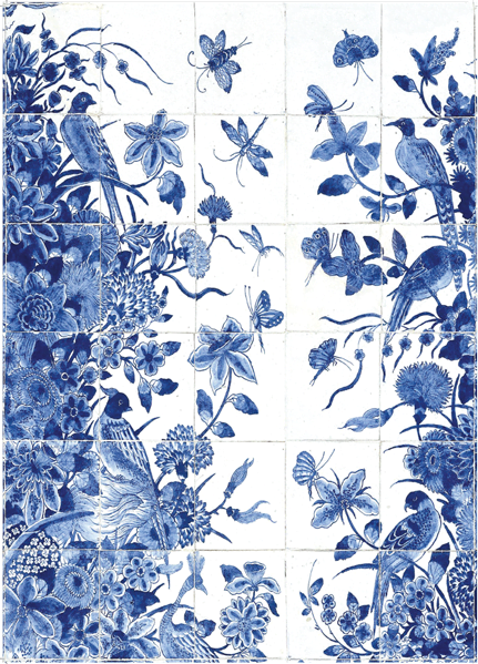 Daar was een prachtige theedoek te koop met precies de juiste lengte en een passende, klassieke afbeelding van een tegeltableau in Delfts blauw. Dat moest de ondergrond worden!