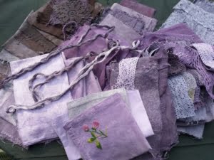 Tot mijn verrassing verfde dat heel goed en ik kon meerdere rondes stoffen verven in hetzelfde verfbad. Het verfde mooi dieppaars en de lapjes werden per ronde maar een klein beetje lichter.
