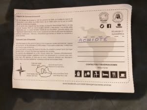 Onder andere met Achiote. Ik had er nog nooit van gehoord. Iemand heeft het woord daar voor me opgeschreven zodat ik het niet kon vergeten.