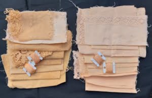 Na een ruime week van koken, afkoelen, beitsen en vooral wachten had ik uiteindelijk heel wat lapjes geverfd.
