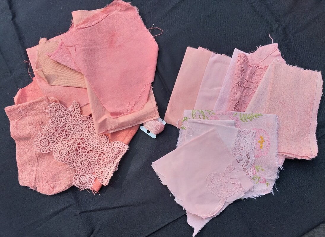 Dit is voor mij de meest vertrouwde manier van werken. Het betekent textiel (etc) op en naast elkaar leggen.