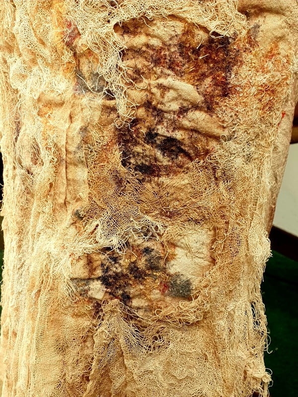De stof moest eerst worden gewassen in water met soda en daarna drogen.