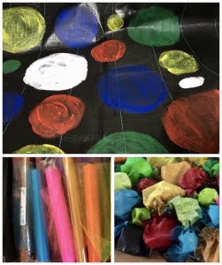 Op vrijdag waren er workshops voor kinderen, waar ze met krijt op textiel mochten kleuren. Hoe bekend is dit voor ons.