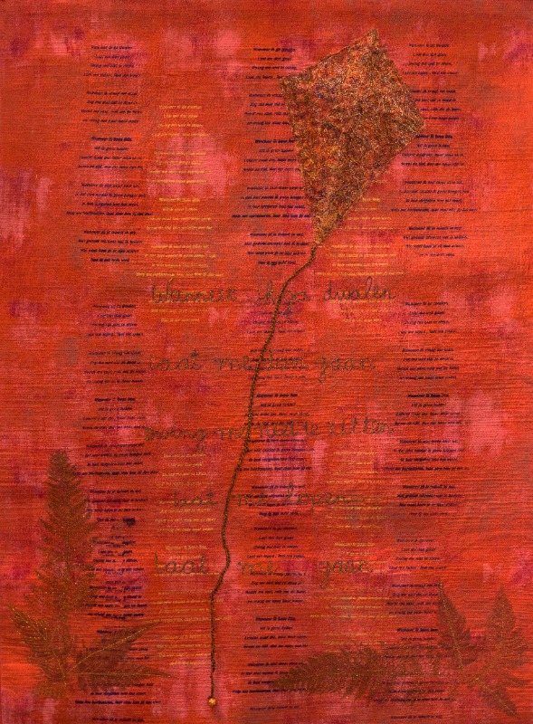 Joke Visch mocht het gedicht “Wanneer”van M.C Eberhart gebruiken, als de tekst met naam erbij opgehangen werd. Zij heeft haar quilt “Laat me gaan “genoemd
