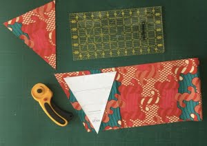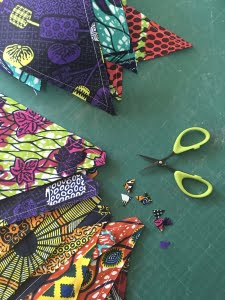 - Snijd de vlaggetjes uit met een rolmes en een liniaal, of knip ze uit nadat je ze met een zacht potlood op de stof hebt getekend.