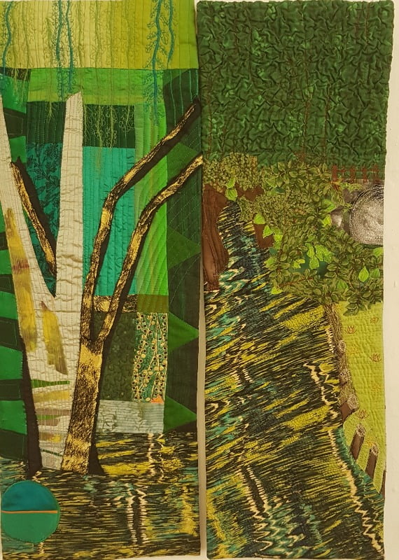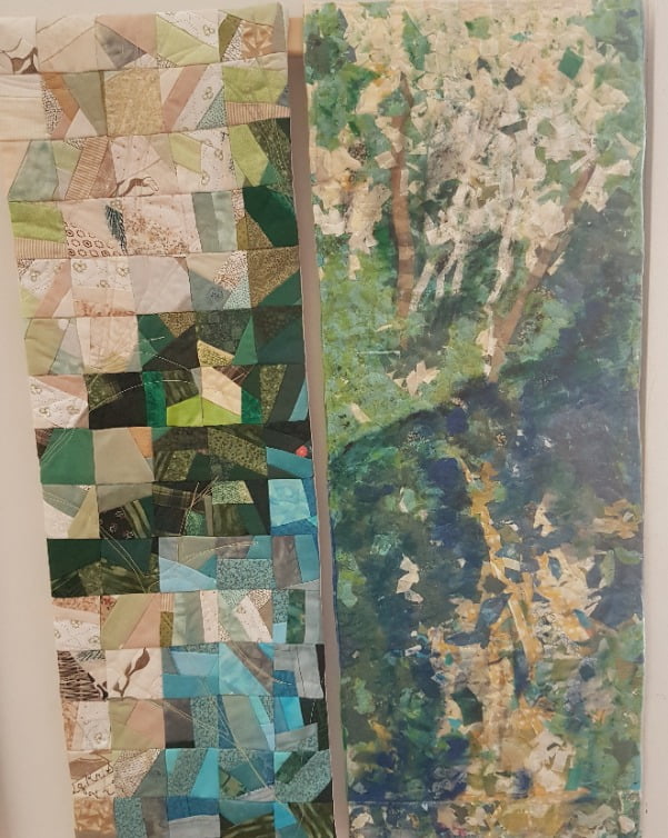 Veel enthousiaste leden zijn bezig aan hun helft van de half en half uitdaging. Sommigen zijn zelfs al klaar en stellen terecht de vraag: wat nu? Hoe zit het met de afwerking? Welnu dat is heel eenvoudig. De quiltjes mag je naar eigen inzicht afwerken met een zigzagsteek of een bies naar achteren. Als beide quiltjes naast elkaar hangen is het leuk als de afbeelding doorloopt dus zonder zichtbare bies. Maar aan de achterzijde moet wel een tunneltje komen, zodat we de quiltjes t.z.t. kunnen ophangen. Een smalle tunnel van 6 cm volstaat en natuurlijk maak je ook een leuk label om achterop te naaien. Wanneer we de quiltjes samen met de inspiratiefoto gaan tonen weten we nu nog niet, omdat er nu nog geen plannen gemaakt kunnen worden voor een tentoonstelling. Zodra dat echter mogelijk is zullen we iedereen daarover informeren. (voor deze uitdaging is aanmelden niet meer mogelijk)