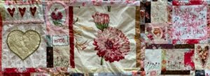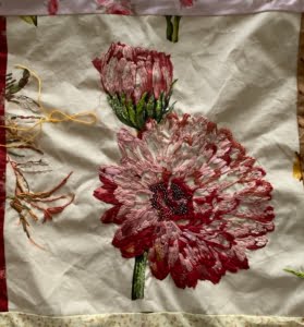 Van de tante van mijn man kreeg ik gordijnen met deze rozen erop…ik wist meteen… dit wil ik ervan maken…het was geen quiltstof maar dikkere gordijnstof… toch…het past er perfect bij…