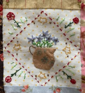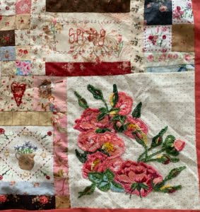Het linkerblok is vooral een blok met patchen en veel borduren…ik zal wat details aan jullie van dichtbij laten zien…