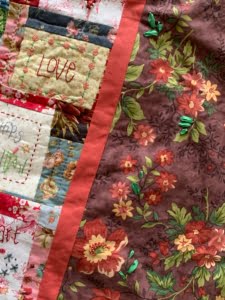 Het past zo bij de voorkant van de quilt, nu word het helemaal een heerlijke oma, vintage quilt… en ik heb geluk, het is precies genoeg…
