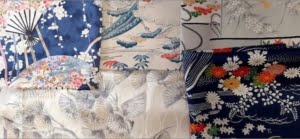 Japan heeft zo’n 100 verschillende soorten zijde en technieken. Er is crêpezijde, chirimen crêpe, shibori (tie-dye) zijde met licht glans en glanszijde. De coupons hebben een breedte van ongeveer 36cm. Ook zijn er halve coupons van 18cm.