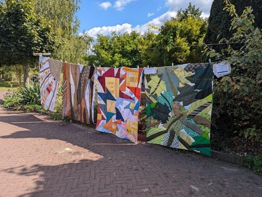 Bedankt voor de organisatie, mijn helpers en iedereen die komen kijken is voor het geslaagde weekend. En bedankt aan Evelyn en haar man voor de gastvrijheid en dat ik hun tuin weer mocht volhangen met quilts.