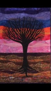 Bij de volgende foto zijn het naast de kleuren ook het lijnenspel waar de foto en de quilt met elkaar overeenkomen: