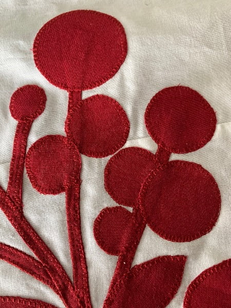 Zo ziet het eruit als het met de naaimachine gefestoneerd is… Ik ben best tevreden… Mijn eerste cirkels zijn even wennen maar nu na al deze cirkels kan ik wel zeggen… “Ik kan cirkels vastzetten op de machine”…