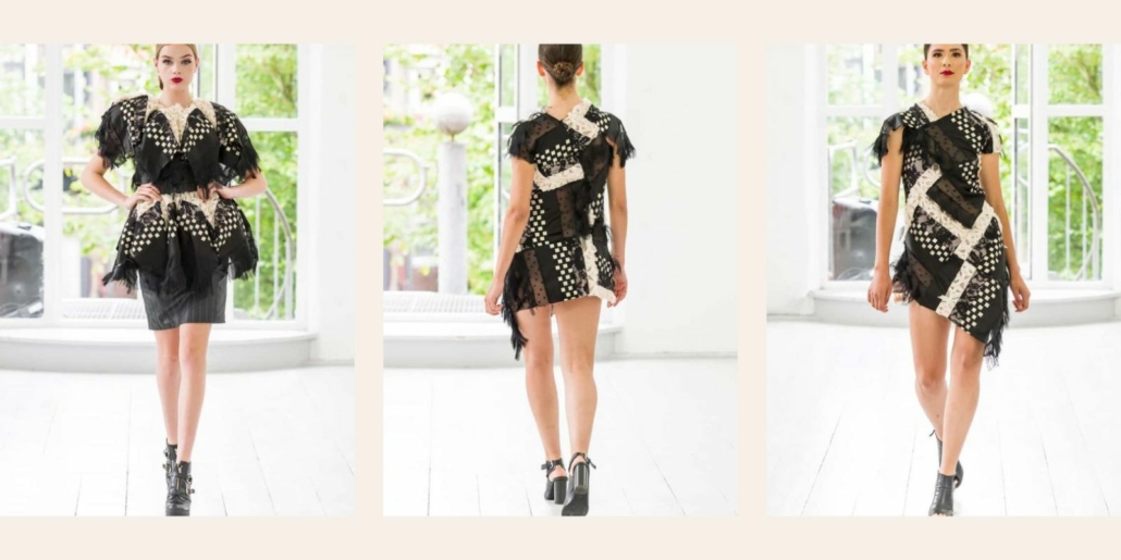 De basis van de kledingstukken met een knipoog naar het quilten, waren patches, die ze uitzocht uit alle stoffen van de collectie. Vanuit duurzaamheidsoogpunt ging niet veel stof verloren. Het zijn ook zulke prachtige stoffen! Met de patches ging Sepehr Magsoudi mouleren. Er ontstonden hele bijzonder jurken, die zij vervolgens in elkaar naaide. Best een ingewikkelde klus, maar met een prachtig resultaat. Bijgaand de foto’s, van de fotograaf RvH Foto, die alles duidelijk maken.