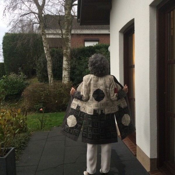 weer te gaan ontwerp-tekenen en een patchworkjas te maken met de Japanse stoffen van Marij, die enkele straten bij haar vandaan woont. En dat lukte.