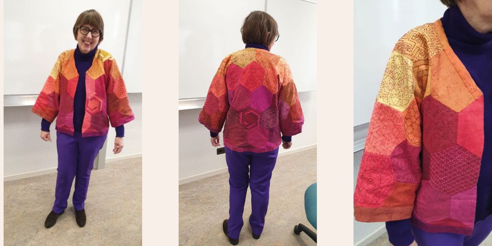 De quiltsters die reageerden, showen hier zelf hun jas. Jasjes die zij al jaren met plezier dragen. Ook patronen, boeken, een blog en ontwerpen komen aan bod.