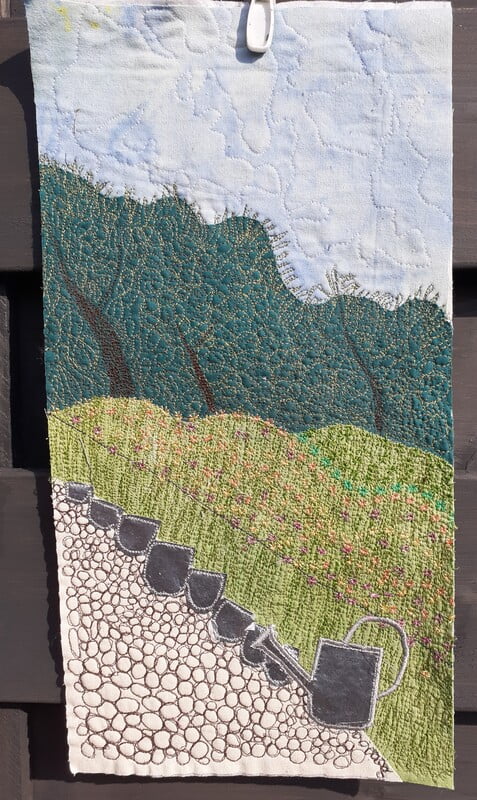 Ondertussen voltrekt zich een ramp in Limburg, wat verschrikkelijk is dit voor de mensen die daar getroffen worden. Er was een moment in een verslag dat raakte me en ik denk wie het gezien hebben ook. De quiltster die een quilt liet zien die ze kon redden maar daar vertwijfeld bij stond. Ik heb naar mijn stapel quilts zitten kijken en bedacht hoeveel liefde en werk daarin zit en wat verschrikkelijk als ik mijn passie zo door die ramp zie verdwijnen. En dan het vervolg; hoe is het met al die lappen die door die modderstroom in de was moeten en kunnen ze nog wat redden? Hoe is het met de naaimachines?, etc. etc.
