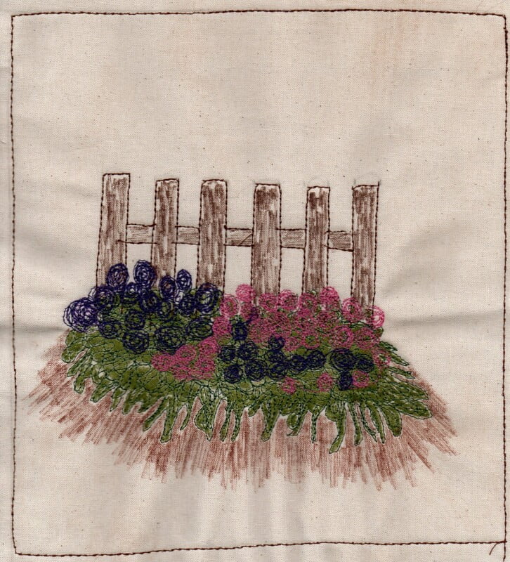 En toen zag ik het! Wat is je doel vandaag? Nou, 10 meter lopen naar het tuinhek. En daar was De-Stoffige-Dagboek bijdrage een feit. Draadjes en voor het hekje bruine wasco. Ben ik nu over mijn DIP heen? Waarschijnlijk wel want zittend voor mijn kast met lappen eigen geverfde en commerciële ben ik toch wat gaan zitten puzzelen.