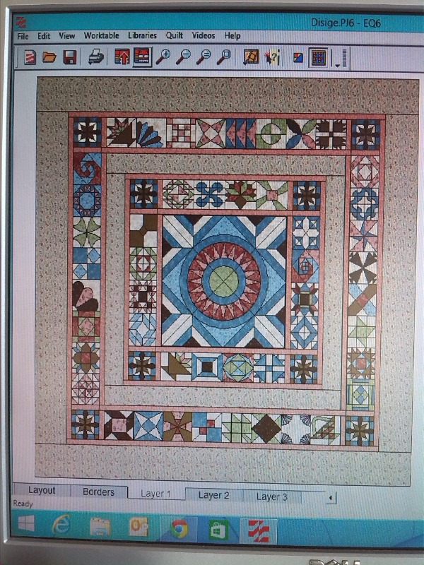 Met mijn gebruikelijke overenthousiasme had ik het onbesuisde idee opgepakt om een quilt te ontwerpen en dat ontwerp te gaan verkopen. Tot zo ver ging alles nog goed. Aan de slag, toen nog met EQ6.