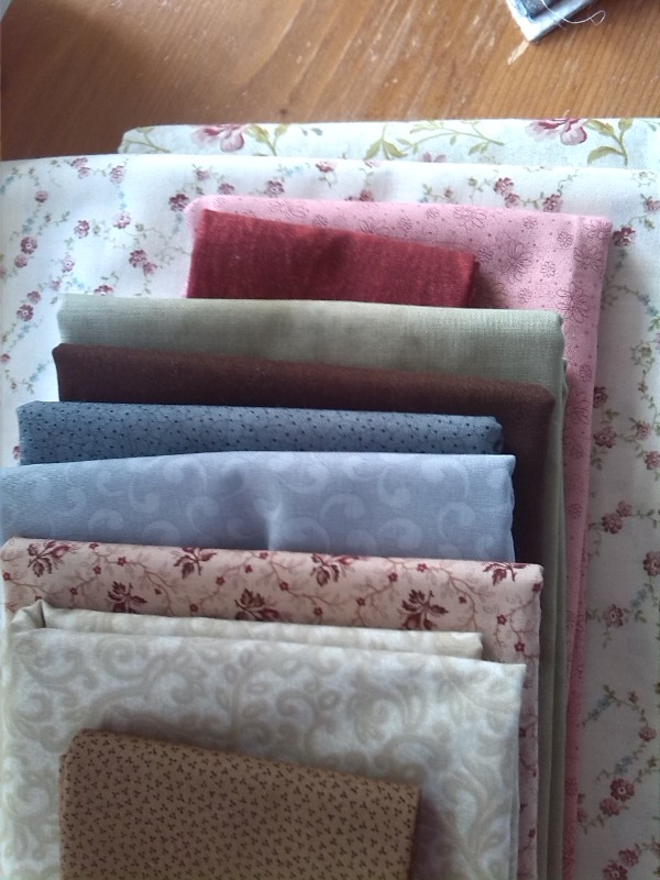 Populaire kleurtjes, de quilt moet een heleboel mensen aanspreken. Waarschijnlijk zou dat ontwerp, in een mooi patroon gegoten, nog beter verkopen wanneer ik er een echte quilt van zou maken. Alleen maar zo’n computerschermfoto is ook maar zo kaal. Vol goede moed toog ik naar de quiltwinkel, met mijn stoflijstje, om gezellige stofjes bij elkaar te zoeken. Ook dat ging nog van een leien dakje.