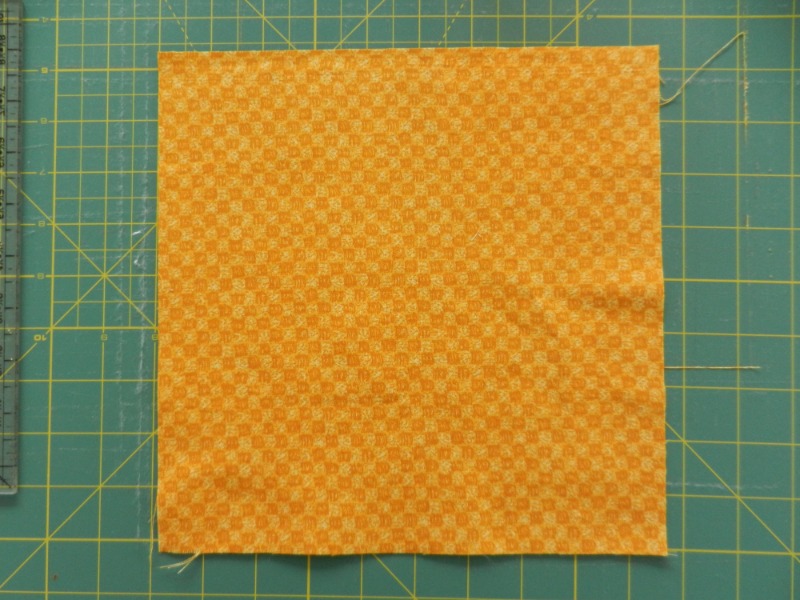 Ik neem als voorbeeld steeds een blok van 10 centimeter. Die 10 centimeter is dan de maat van het vierkant dat je uiteindelijk ziet en hebben wilt in de quilt. Dus voor een vierkant van bijvoorbeeld 10 centimeter, snijd (of knip) je een vierkant van 10cm + 2x de naadtoeslag.