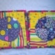Cirkels worden het deze keer; ronde vormen. Heb mijn gelli plate gepakt en daarop stof gelegd, dat is een makkelijke oplossing. Het stof gaat niet meer schuiven en blijft “geplakt” op de gelli plate liggen.