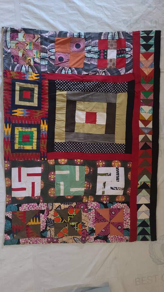 Het creatief vuur is definitief aangewakkerd in Nakivale! De groep is nu bezig hun eigen sampler quilt te maken als vervolgles. Tijdens die les gebruiken ze 5 basis quilt patronen, leren ze sashing maken, blokken van verschillende grootte maken en hoe ze van losse blokken een quilt maken.