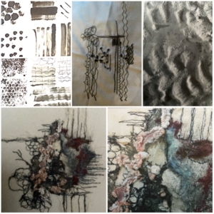 proeven tijden QS: punten en lijnen, oefenen met de naaimachine en een werkstukje maken waarbij het strand de inspiratie is