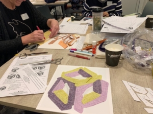 Dit jaar begonnen we via Facebook met een wekelijks patroontje voor een Paasmysterie. De volledige lay-out en de rand van de quilt stonden in het eerste nummer van Quiltnieuws. Veel leden deden mee en de resultaten zijn gedeeld via Facebook en Prikbord. Een andere manier om met elkaar in contact te blijven is via de weblogs op de website van het Quiltersgilde. Opvallend waren de thema’s opruimen, afmaken en het delen van technieken met online lessen en instructiefilmpjes via YouTube. Ook het Textielfestival ging digitaal. Nog tot maart 2022 waren de werkstukken digitaal te bewonderen en lessen te volgen. De Meet&Greetdagen in 2022 waren, naast de regiodagen in het najaar, een succesvolle manier om elkaar in levende lijve te ontmoeten. In de warme zomer waren er de zomerweekcursussen bij Hawar en in augustus het Festival of Quilts in Birmingham. Het Textielfestival Weerribben werd in juni voor de laatste keer georganiseerd en het Quiltersgilde was erbij.
