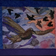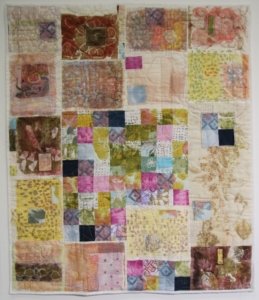 Daar is de afgelopen jaren om de welbekende reden een beetje de klad in gekomen. Gelukkig konden we in Rijswijk afgelopen april genieten van een aantal quilts gemaakt naar aanleiding van de uitdaging met het thema ‘Threads that bind’ (letterlijk: draden die verbinden). Deze maken in oktober nog een laatste tentoonstelling mee in België en dan gaan ze terug naar de makers.