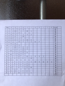 Anderhalf jaar later begon het toch te kriebelen. Het patroon bestond uit 25 blokken waarvan heel optimistisch werd gezegd dat je er in de adventstijd elke dag 1 kon maken, dan hoefde je daarna ‘alleen nog maar’ de blokken aan elkaar te zetten en was de top af….Dat leek me wel heel gemakkelijk gezegd maar ik nam me voor om er in januari 2018 aan te beginnen, zodat ik bijna een jaar had om de quilt met Kerstmis 2018 op te hangen.