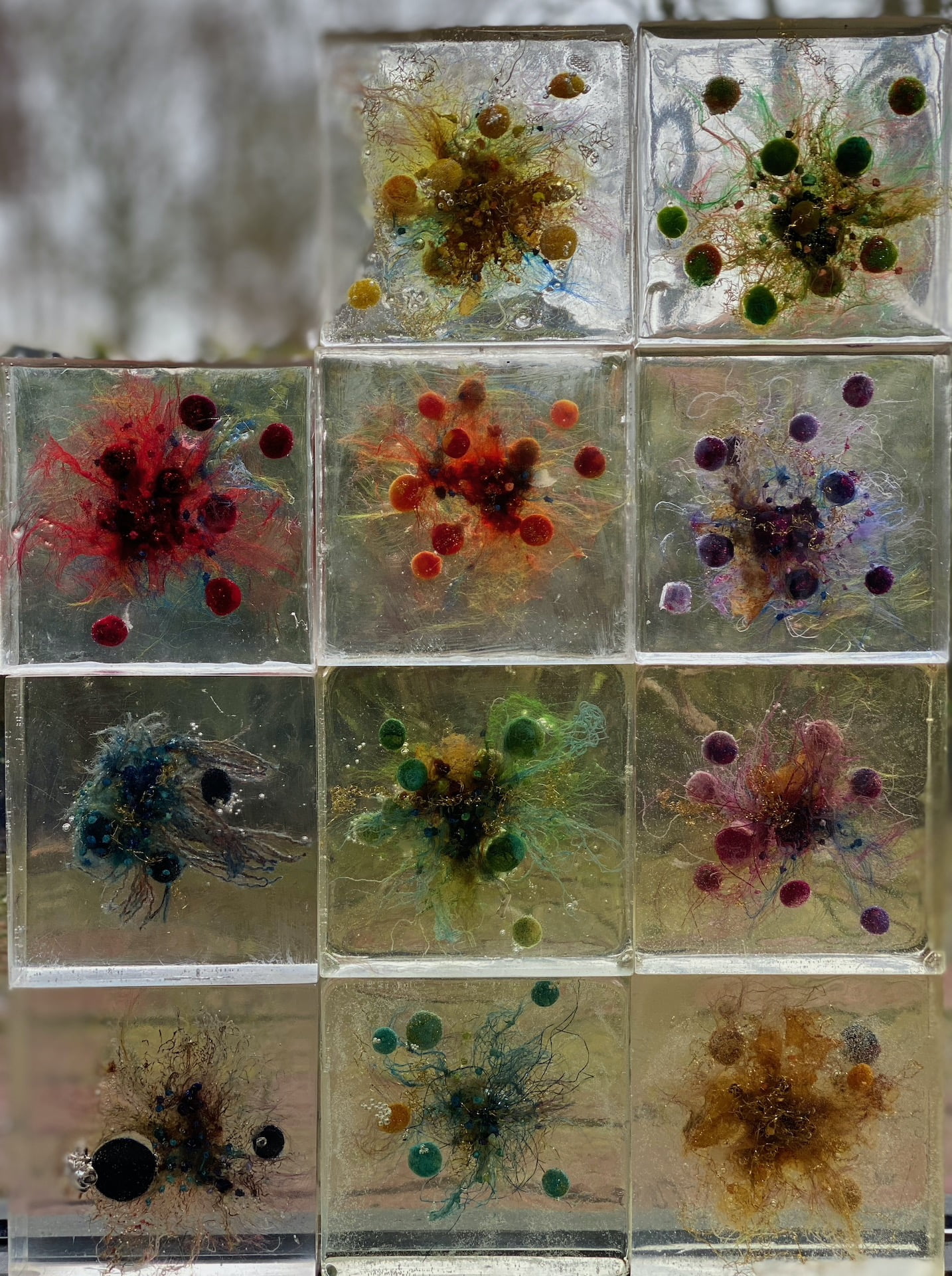 Kortom voorlopig heb ik voldoende uitdagingen en moet ik vooral niet de lapjes en draadjes vergeten. Tenslotte maken die mij echt gelukkig. Ik wil nog heel veel blokken maken voor mijn werk ‘Gevangen Natuur’. Het is een vertolking van de kwetsbare natuur die gevangen zit in het gedrag van de mens. Eind juni ga ik het exposeren in Galerie ‘De Ruimte ‘ in Geldrop. Er is dus nog genoeg werk te doen.